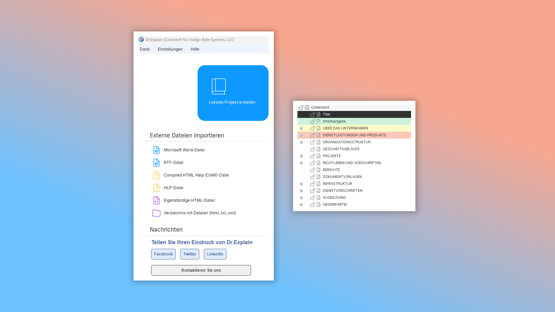 'Dr.Explain funktioniert hervorragend, und wir haben unser großes Online-Hilfeprojekt bereits in das gewünschte Format übertragen.'