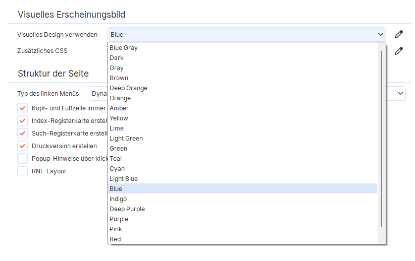 Wenn Sie mit CSS nicht vertraut sind, können Sie den visuellen Stil der Seiten ganz einfach anpassen, indem Sie voreingestellte Farbthemen verwenden, die Sie nach Ihren Bedürfnissen ändern können. Wenn Sie hingegen mit Cascading Style Sheets (CSS) vertraut sind, bietet Dr.Explain die Möglichkeit, das Aussehen und sogar das Verhalten von Elementen und Blöcken Ihres Online-Handbuchs im Detail anzupassen.