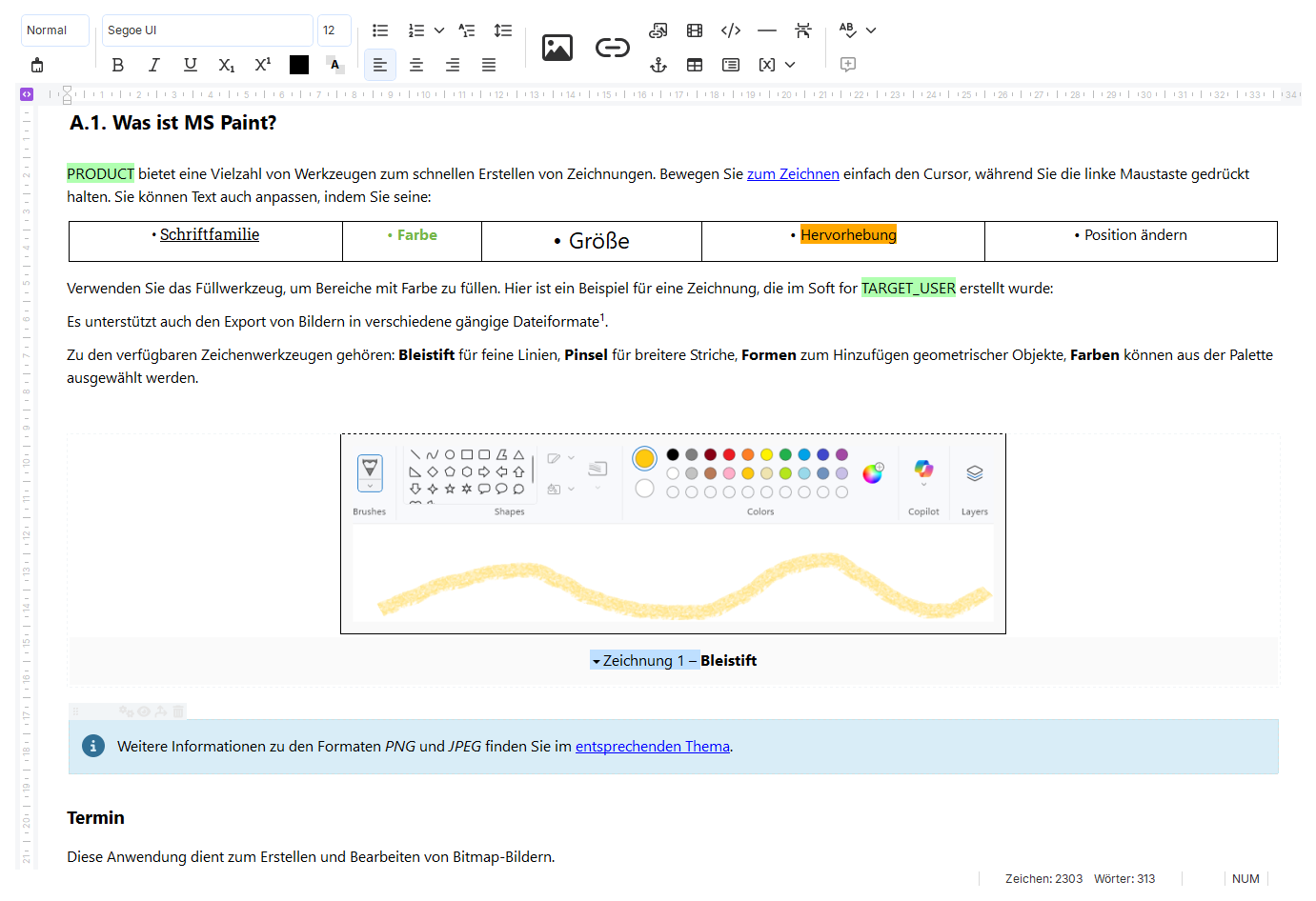 Einheitliche Arbeitsumgebung. Alle Werkzeuge, die für die Erstellung professioneller Benutzerdokumentation notwendig sind, befinden sich in einem einzigen Programm: Sie müssen nicht zwischen Text- und Grafikeditor wechseln.
