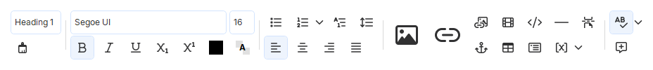 Der integrierte WYSIWYG-Editor ermöglicht das Einfügen von Tabellen, Listen, Links, Videos, speziellen Objekten, Drittanbieter-Code usw. Hier sind einige seiner Werkzeuge.