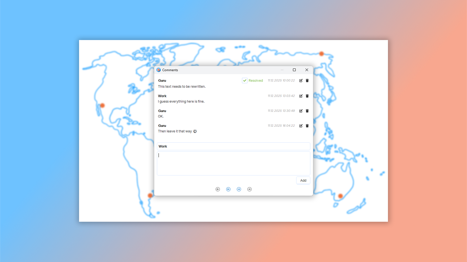 Ja. Jeder Autor kann Kommentare hinzufügen, die für alle Projektteilnehmer sichtbar sind.